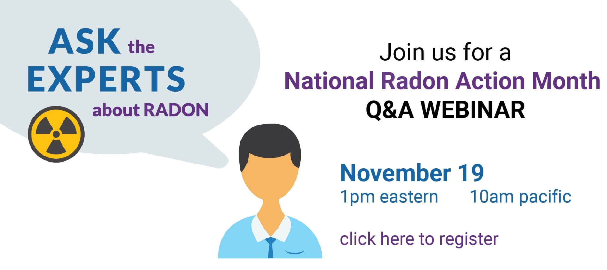 To take advantage of this surge of interest, and to delve a little deeper into some of the tough questions, we’ve assembled a team of radon experts who will join us for a live discussion November 19th. This webinar is aimed at the Canadian public, and is meant to be a resource to help you limit those long conversations answering questions. It will be available to view through Zoom or Facebook live. We’re currently accepting questions ahead of time here, and signup is available through the same portal.